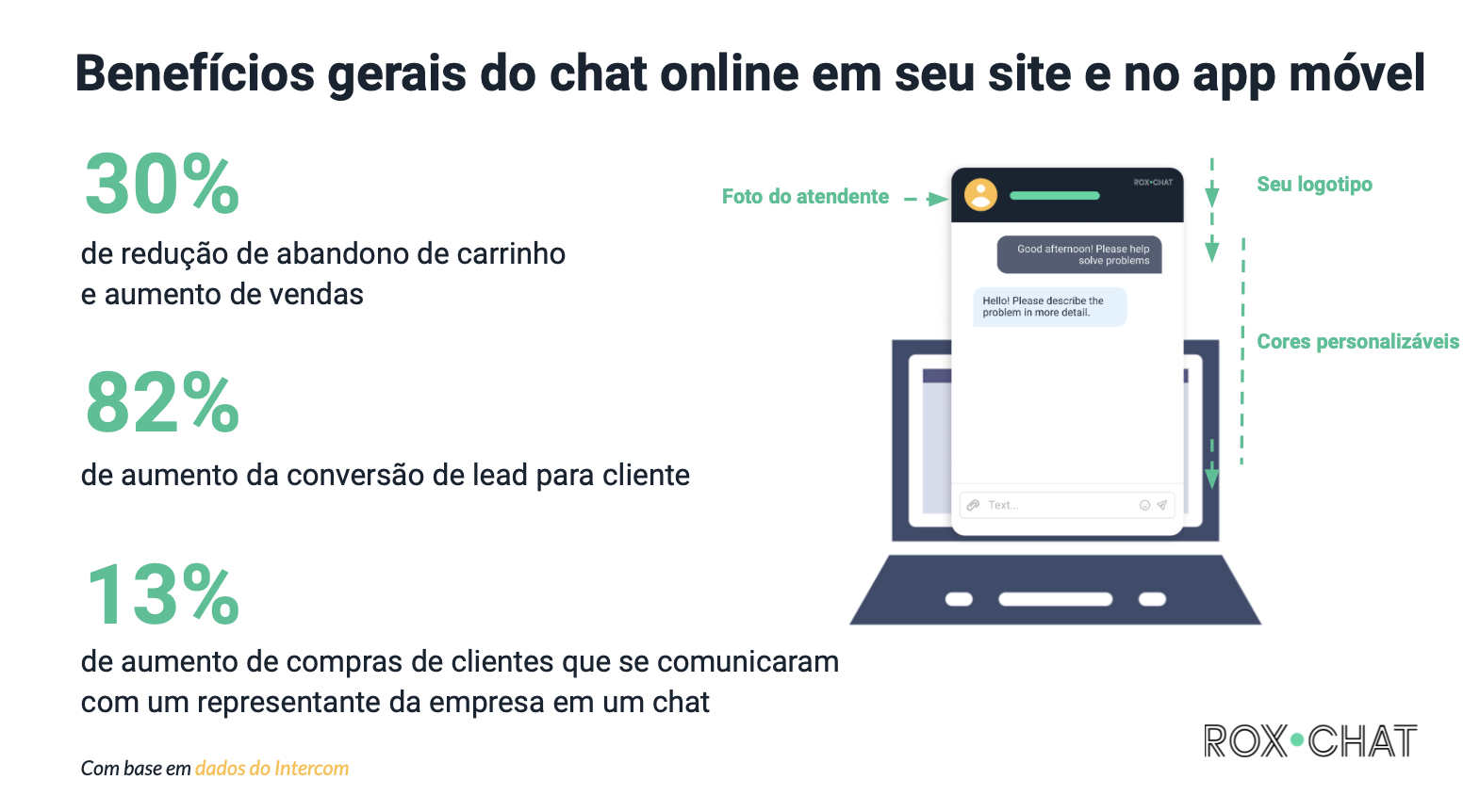 - Chat ao vivo – facilita interações em tempo real com o cliente